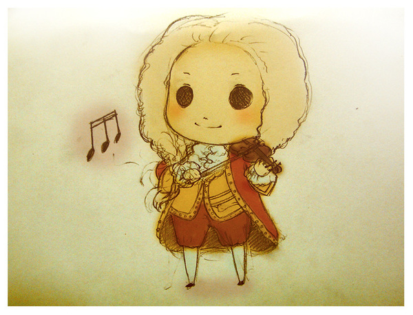 Привет Пикабу! В Deviantart'е Нашел рисунки одного человека. В рисунках изображено известные композиторы в стиле Чиби.