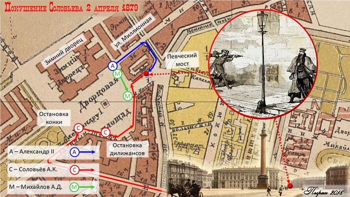 В 1879 году часть участников «Земли и Воли» выступили с предложением осудить царя и казнить. Это внесло раскол в ряды революционеров, но препятствовать покушению они не стали. Стрелять вызвался Александр Соловьев.