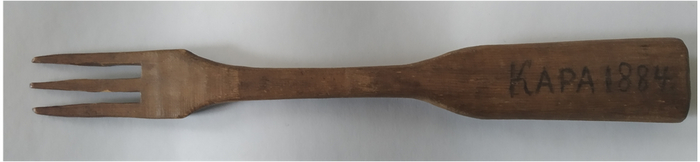 Деревянная вилка Ореста Веймара с Карской каторги. Надпись «Кара 1884». Из личной коллекции Марианны Петровны Ребиндер. Фото предоставлено М.П. Ребиндер