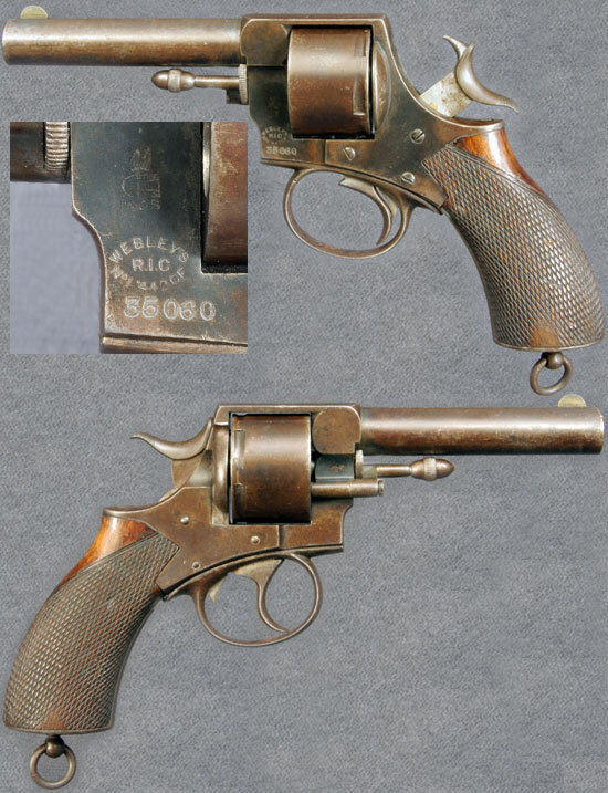 Револьвер «Webley R.I.C.» RIC № 1 (сокращение от «Royal Irish Constabulary») стал первым в истории компании Webley револьвером двойного действия. Он был принят на вооружение Королевской ирландской полицией в 1868 году. В основном изготавливался под патрон .442 Webley. Небольшое количество револьверов было произведено под мощный патрон .500 Tranter. Именно такой и был куплен в магазине. Скорее всего это был некий "барабан Страдивари", красивый выставочный образец, рассчитанный на богачей из глубинки.