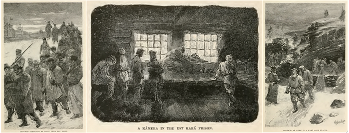 Зарисовки из жизни на Карийской каторге. Иллюстрации из книги Джорджа Кеннона (Kennan George) «Siberia and the exile system». volume II, 1891, New York,The Century Co.