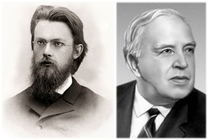 Слева. Владимир Иванович Вернадский (1890-е годы), академик АН СССР (1863-1945), справа: Пётр Александрович Ребиндер, академик АН СССР (1898-1972)