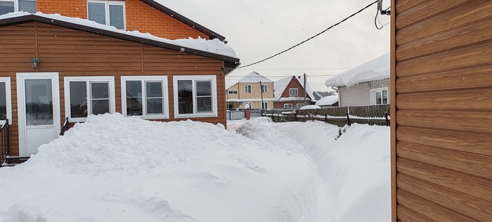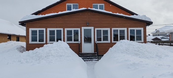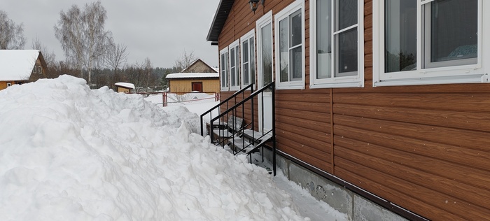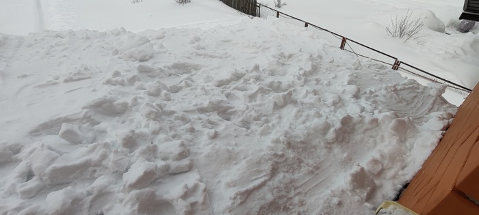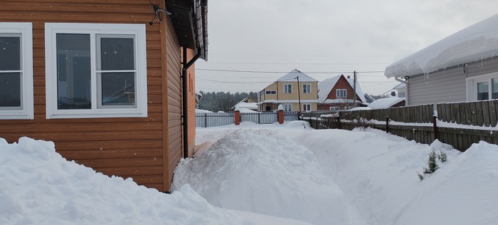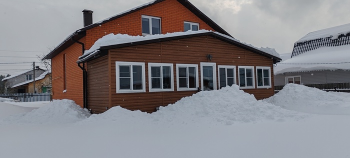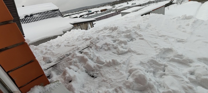 Люди, сидящие на диване и читающие мой рассказ, скажут, а что здесь сложного, залезай на крышу с лопатой и вперёд. Ага, это со стороны все кажется легко и просто, на деле все иначе. И так , в первую оттепель 14 февраля я взял палку и померил толщину снежного покрова крыши веранды, было 75 см. Двухсканная конструкция , стропильная система из доски 150х50, дополнительные подпорки под стропила, анкера, металлочерепица- все говорит о надёжности конструкции, сделано с учетом снеговой нагрузки, и я решил не паниковать, оставить все , как есть. Но тут снова пошёл снег, потом опять, и вчера вечером я вновь измерил толщину и ужаснулся- один метр. Решил посчитать, какую массу выдержит 1м2 крыши, и расчет показал, что с учётом массы снега моя крыша легко выдержит даже полтора метра, но есть одна оговорка, речь идёт о сухом снеге. Другое дело, какой будет его масса , когда он ( снег) наберёт влаги, тем более, что по крыше он распределён неравномерно, соответственно, в определённых местах нагрузка будет выше. Так я сижу вчера вечером в своих расчетах и краем уху слышу легкое поскрипывание со стороны вернады, ну, думаю, все , приехали, но, слава Богу, обошлось. Однако, утром решил, что снег с крыши надо эвакуировать, а так как это серьёзный риск свалится и поломаться, решил позвонить знакомому узбеку и попросить об услугу. Шустрый азиатский паренёк приехал с утра пораньше, все внимательно посмотрел и сказал: « Шеф, снэг очень многа, опасна мана, пятнадцать тысяч давай, будет работа делять».Ну, думаю, первое предложение понятно, надо продолжить тендр, сказал узбеку ,что перезвоню позже и пошёл к соседу, который так же сразу явился, посмотрел и говорит, что за двадцатку скинет с крыши, а потом расчистит упавший снег перед верандой, по-другому не согласен, торговать неуместно. Думаю, решение надо принимать сейчас. Сегодня уже оттепель, температура ближе к нулю. Решил так, что за такие деньги я лучше куплю жене подарок на 8 марта, что я не мужик, надо побороть в себе страх высоты и боязни соскользнуть. Взял приставную лестницу, подставил, стал подниматься,чтобы скинуть снег с краёв и понял,что это бредовая идея. Собрал волю в кулак, взял лопату, поднялся на второй этаж, открыл окно, через которое начал расчищать себе площадку ,чтобы встать. Кое-как получилось, аккуратно вылез на крышу и стал скидывать вниз лопатой снег с поверхности вокруг себя. Потом, подготовил еще одну площадку перешел и по такому же принципу. Через минут двадцать вошёл в раж и начал спокойнее передвигаться и интенсивнее скидывать и тут себя поймал на масли, что стаю на краю , надо остановиться, отдышаться и отойти от края крыши. Стал подниматься и когда сделал шаг вперед, опорная нога провалилась и стала соскальзывать. Остановился, а ухватиться не за что. Стал мелкими шажками подниматься ближе к открытому окну, а надо было почистить ещё вторую половину крыши. Решил ,что сверху буду оставлять больший слой снега и вперед. Признаюсь, что поначалу коленки подёргивало, потом нормально, осмелел, даже появились мысли ,что если соскользну , упаду в сугроб и все будет нормально, и таким образом с этой идеей работа была выполнена.