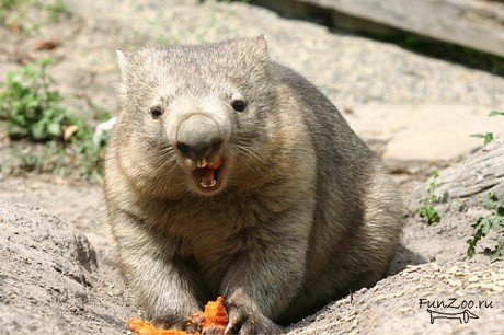 Вомбаты относятся к семейству двурезцовых сумчатых. Строение их челюстей чем-то схоже с челюстями грызунов. На верхней и нижней челюсти расположено по паре передних режущих зубов. Всего же у вомбатов насчитывается 12 зубов – это самое наименьшее количество зубов среди сумчатых. Фекалии вомбатов имеют форму кубиков, что вызвано особым строением их анального отверстия