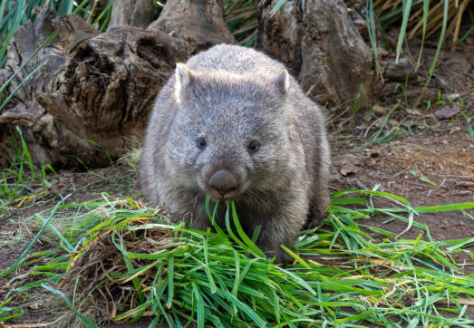 Днём вомбаты отдыхают в своих подземных убежищах, а на поиски провианта выходят ночью. В меню у вомбата сочные молодые побеги, грибы и разнообразные коренья. Обоняние у этих зверьков великолепное, и сладкий корешок вынюхать они способны даже через слой почвы.
