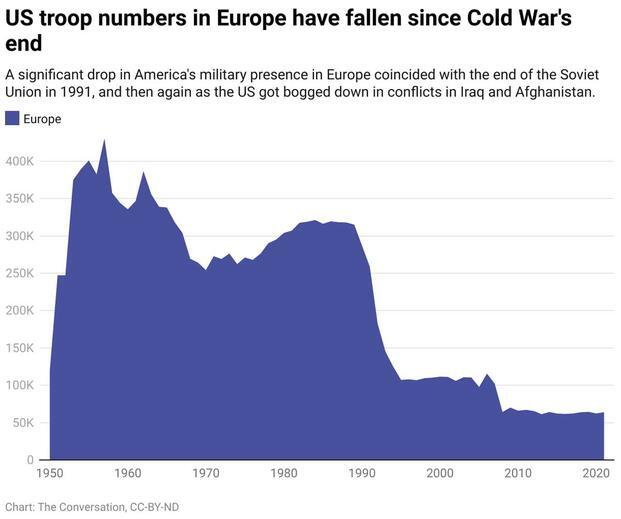 Вооружённые силы и военные базы США впервые появились на постоянной основе в Европе после окончания Второй мировой войны. В конце 1950-х годов численность контингента достигла почти 500 тыс. голов. По итогу уничтожения СССР американцы начали выводить свои войска из европейских стран.