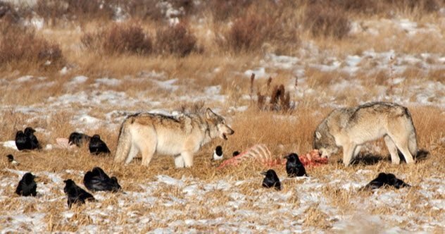 Нет никаких сомнений в том, что волки обладают силой и сообразительностью, что позволяет им охотиться самостоятельно, но, благодаря своим пернатым друзьям, это не лучший для них вариант. Недавнее исследование показало, что уже через минуту после того, как волки завалили волка, вороны уже были на нем. По некоторым оценкам, пара волков лишиться почти 40 процентов мяса лося в пользу воронов. Если речь идет о шести волках, то воронам достанется только 17 процентами туши. Хотя вороны и волки могут казаться плохими партнерами, это взаимовыгодные отношения, даже, если кажется, что волки не получают от него выгоды.