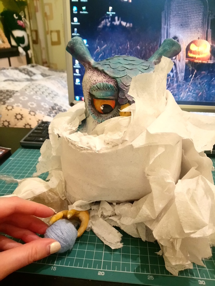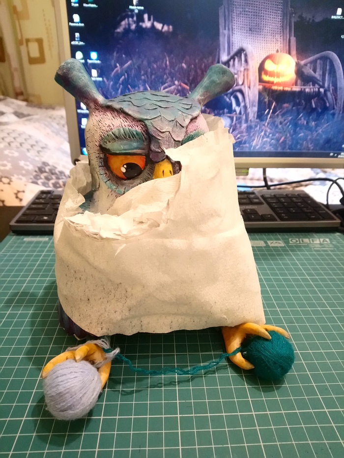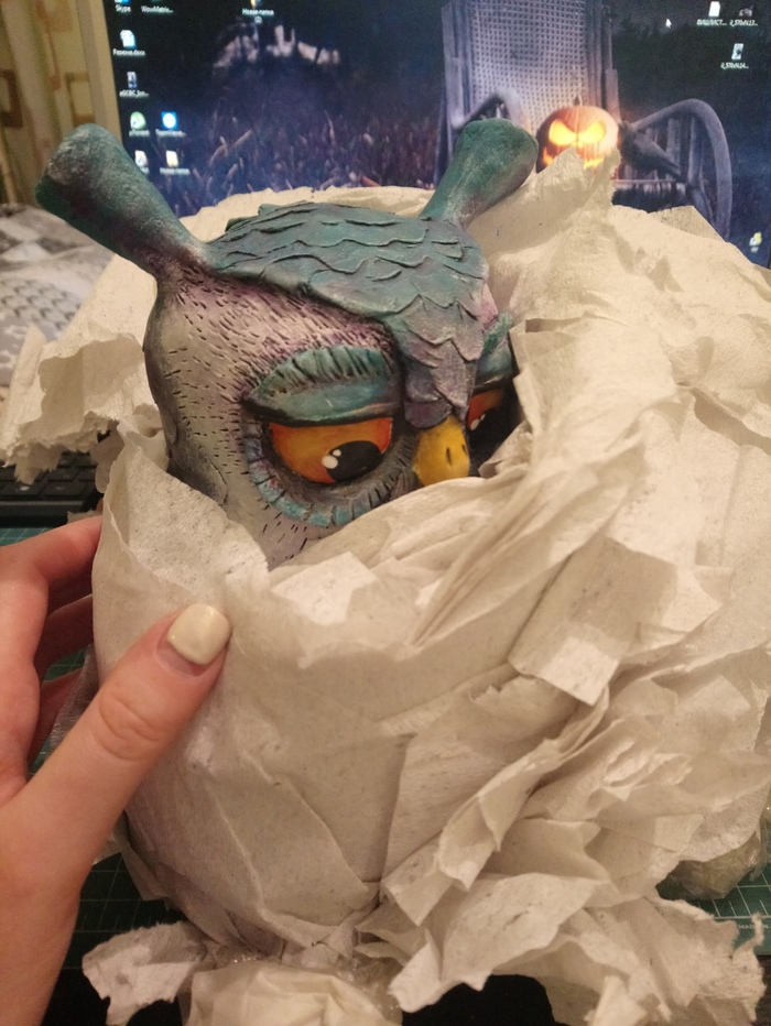 Продолжим. Далее из коробки вылез господин Ворон-оптимист (это я его так назвала) и ТОТ САМЫЙ ЗНАМЕНИТЫЙ СОВ в наушниках, который вы видели каждый пост у Коллбасса на столе. Теперь это мой друг и я горжусь этим)