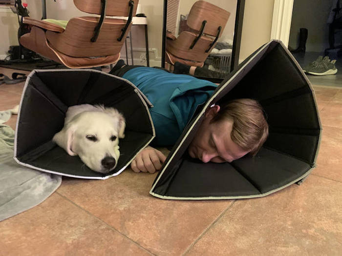 Нашли у кошки какую-то болячку. Тёща сделала ей самодельный временный воротник.