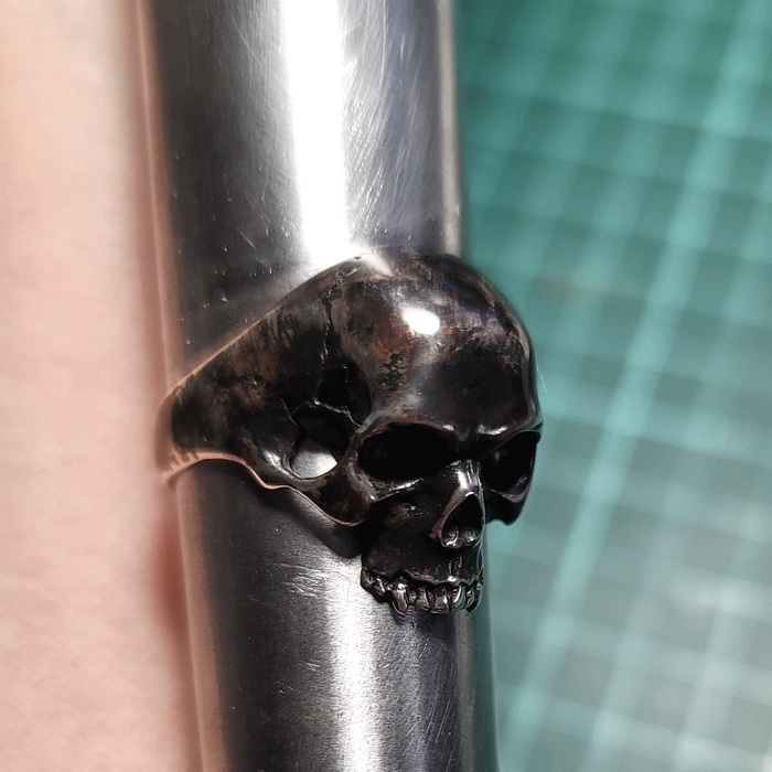 Патину нанесем провереным способом - серной мазью. Она затемнит серебро и изделие преобретет античный вид.