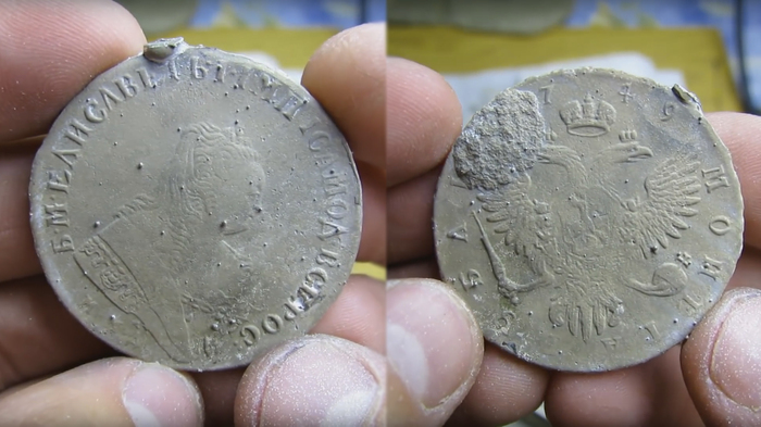 Первое что бросается в глаза после отливки, это куски пирофиллита, которые остались возле ушка. Форма рассыпается мало-помалу. На лицевой стороне отчетливо видно трещину, которая образовалась на литейной форме. С обратной стороны все терпимо, крупных дефектов нет. Тут хорошо видно что металл стремился заполнить зазор между половинами формы, образуя по краям тонкую серебрёную фольгу, которая легко гнется от небольшого прикосновения пальца. В общем дальнейшая работа над моделью это механическая обработка.