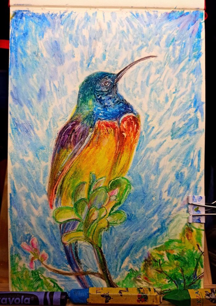 9 SpaceFoxHole Лига Художников Птишка 4 года назад Очередная птичка. Рисовала старой, детской восковой пастелью Показать полностью 1 [моё] Рисунок Восковые мелки Ещё 0