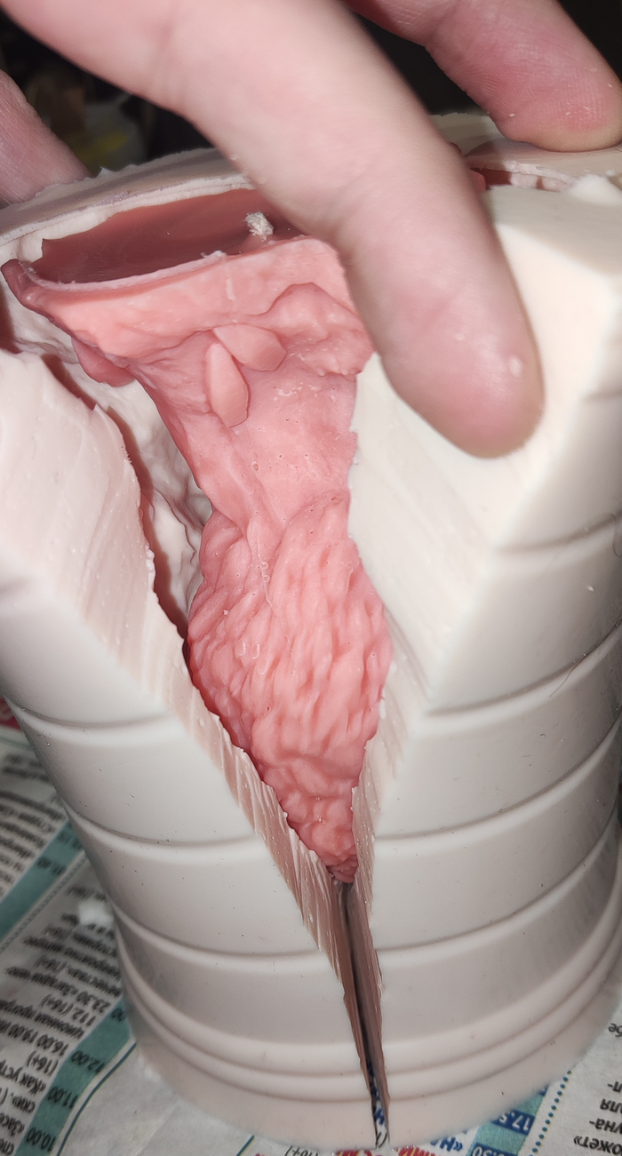 А потом заливаем полученный силиконовый раствор и ждём где-то часов 16. И форма готова, главное нужно аккуратно извлечь "мастер-модель".