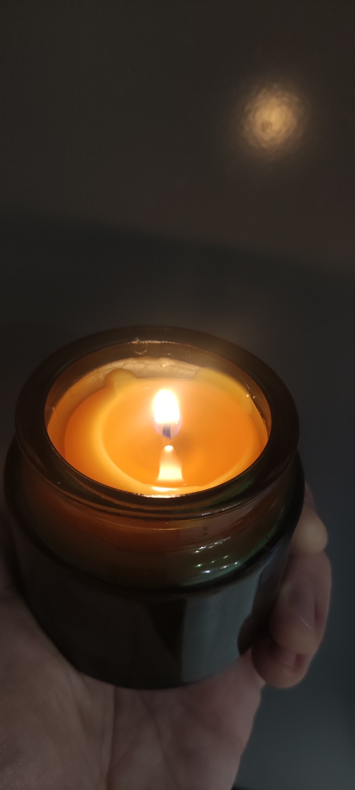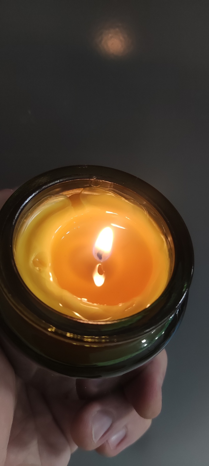 Ну и прикладываю фото горения свечи из пчелиного воска. Вторую мне было жалко поджигать))