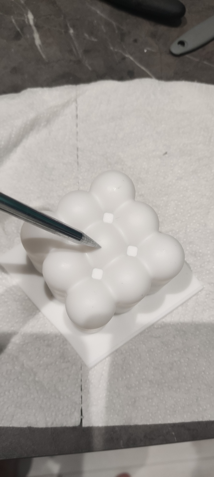 После извлечения фигурки нужно разрезать форму пополам , для облегчённого извлечения будущих свеч. И в принципе в форму можно заливать воск. Сперва проверил на пчелином воске...