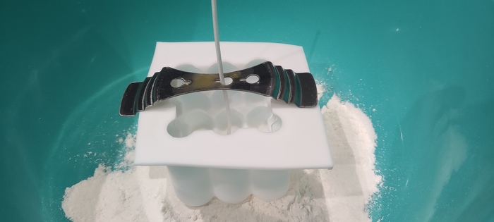 В качестве контейнера использовал пищевой пластиковый. Я думал после обработки разделителем силиконовая форма легко выйдет из контейнера, но нет....пришлось по итоге ломать его. В будущем я буду использовать пластиковые бутылки для этого, но это уже совсем другая история)