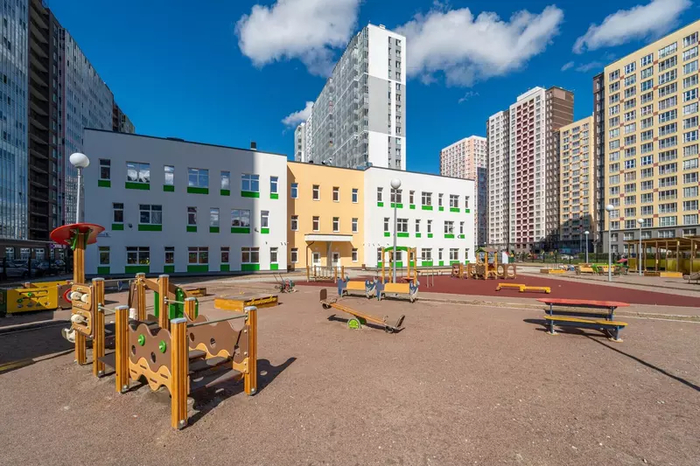Появилось четырехэтажное здание, созданное в рамках Адресной инвестиционной программы. Комплекс включает два корпуса — детский сад на 125 воспитанников и школу на 300 учеников. Школьная часть оснащена универсальными и профильными кабинетами, ИТ-полигоном, исследовательскими лабораториями, спортивными и актовыми залами, медиатекой и зонами отдыха. В детсадовском блоке предусмотрены просторный входной холл, комфортные групповые помещения и зал для физкультуры.