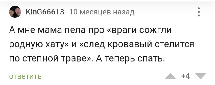 В далёкие времена, когда, чтобы уложить меня спать днем, требовалось байковое одело, полумрак и песня, этот ритуал практиковала мама. Вы помните колыбельную, с которой засыпали? Если, конечно вам повезло и она у вас была. Сложно сказать, как так срослось, но в качестве колыбельной мама выбрала песню «Ой, цветёт калина…», да, та, что в поле у ручья. Она легко пелась, под неё было удобно раскачиваться из стороны в сторону (что немаловажно))). Я качался и убаюкивался под историю про полюбившую молодого парня девушку, а он живет и не знает об этом. Честно говоря, я абсолютно не задумывался о содержании, хотя знал текст наизусть.