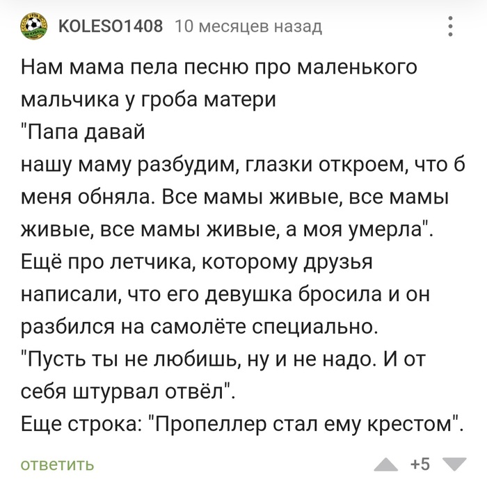Что тут интересного? Могу поделиться своими соображениями. Так налаживается, возникает какая-то непонятная связь между поколениями, не та, что на генетическом уровне, что-то иное. Я никогда не видел этого человека, толком ничего о нем не знаю, но у меня возникает ощущение, что каким-то образом чувствую его, через восприятие этой песни. Может я сейчас блеснул магическим мышлением или накрутил-надумал, но я, как всегда, делюсь тут больше ощущениями и настроением, чем своими логическими опытами.