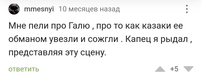 У нас в семействе петь на праздниках не было принято. В основном все разговаривали, ну или ругались. От бабки я слышал только одну песню, причем раза три. Когда мы оставались одни и она начинала рассказывать о своей молодости, своих трёх мужьях, как и чем она болела, как было тяжело строить дом и она помогала деду по строительству, как росли её дети, как я похож на свою пальнутую мать, как в детстве она приходила к своей маме на работу в продуктовый магазин и воровала мелочь в сандаль, чтобы купить мороженое. Когда она вспоминала своего отца, всегда всплывала история о том, что он любил выпить, курил и затягивал одну и туже песню «По диким степям Забайкалья». Она даже не пела, а скорее пересказывала. Она просто смотрела в сторону, но взгляд был размытым и словно блуждал где-то сквозь время, в далёком прошлом.