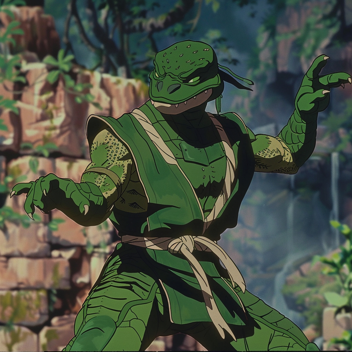 Из воспоминаний Хедетаки Комори: « Мне сказали что нам нужен новый герой Рептилия, ну я им и нарисовал. Эд Бун был очень не доволен , сказал что у нас тут ниндзи, какие ящеры? А что бы вы подумали когда речь идет о рептилии? Поэтому я добавил ему одежду и их это устроило, хотя сначала меня хотели уволить за это»