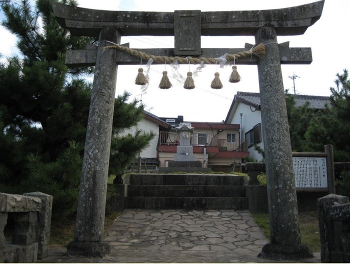 Karematsu Jinja. В период Эдо, когда христианство было запрещено, скрытые христиане пришли сюда, чтобы молиться в тайне. Скала в святыне и могила мученика Сан-Хуана.