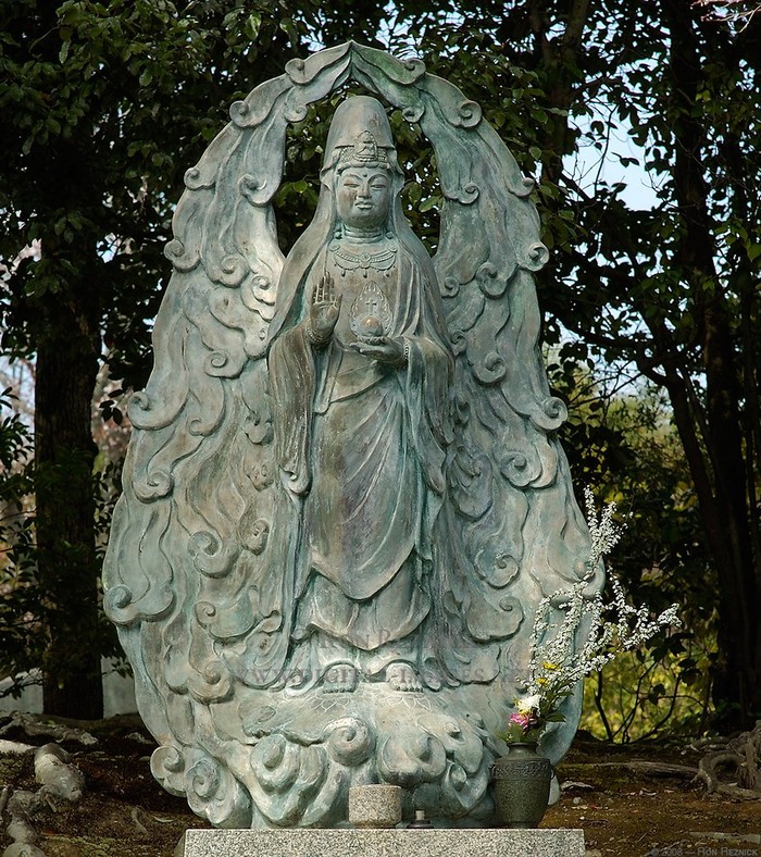 Мария Каннон - символ скрытых христиан Токугавская эпоха породила ещё одну, до этого неведанную японцам ипостась Каннон. Это Мария Каннон, продукт католицизма, занесённого на Японские острова португальскими и испанскими миссионерами в ХVI веке. Во всех обличьях Каннон сохраняет свою непорочную красоту, эту богиню милосердия не зря называют японской Мадонной. После официального запрета на христианство в Японии в ХVII веке те, кто сохранил, несмотря на все гоненья, верность этой религии, продолжали тайком от властей поклоняться Деве Марии, изображённой под видом Каннон. В народной скульптуре влияние католицизма сказалось в появлении изображений Каннон с младенцем, которые и сейчас можно увидеть, особенно в сельских местностях.