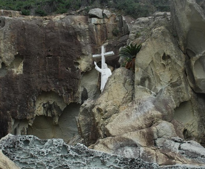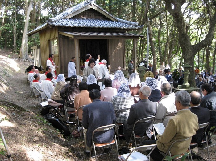 Священная скала, где жители делали вид, что осуществляют синтоистские молитвы, но на самом деле почитали мученика святого Хуана. Чтобы избежать подозрений, почитание святого Хуана было замаскировано как поклонение ками. Этот лесистый холм типичен для поклонения в синто. Даже в наше время, когда потребность в уловке уже давно прошла, в честь святого Хуана эта практика так и продолжается. До 1930-х годов здесь находился небольшой храм (hokora), где солдаты уходя на войну, отдавали дань уважения, но в конце 1930-х годов было возведено здание. Внутри храма находится могила с надписью Сан-Хуан на латыни.