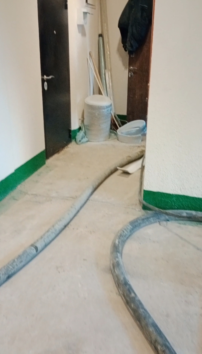 Квартиру мы закрыли на неделю и уехали в село. Через неделю пришли - уже всё просохло, и можно было ходить по стяжке.