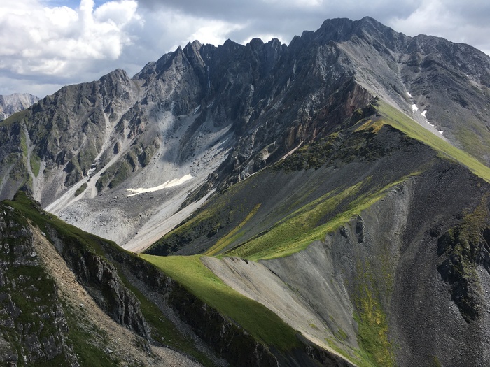 Пик Грандиозный - вид с Агульских белков. Середина июля 2014 года. Публикуется впервые.