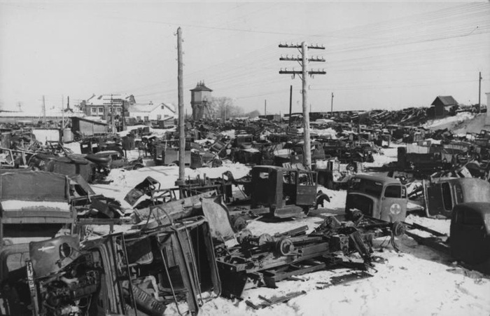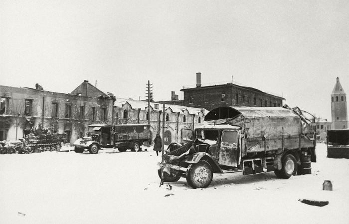 Разгром немцев под Москвой. Разбитая немецкая техника на окраине Калуги