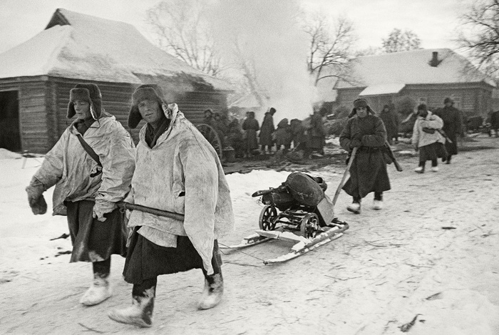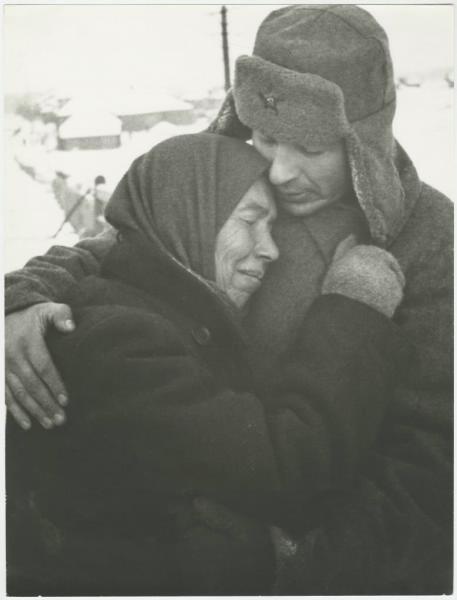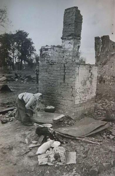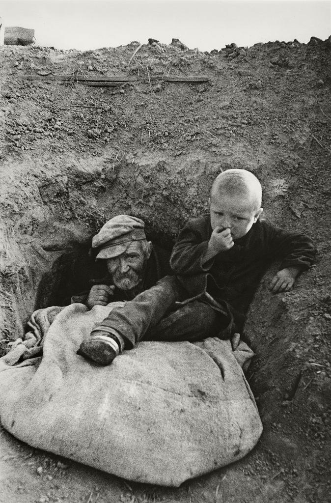 Смоленская обл., август 1941. Дед – Савелий Трофимович Степанченко, колхозник артели «Перелом», и его внук – Шурик (5–6 лет) вылезают из укрытия в земле