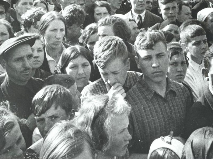 Рабочие завода «Серп и молот» слушают по радио объявление о начале войны
