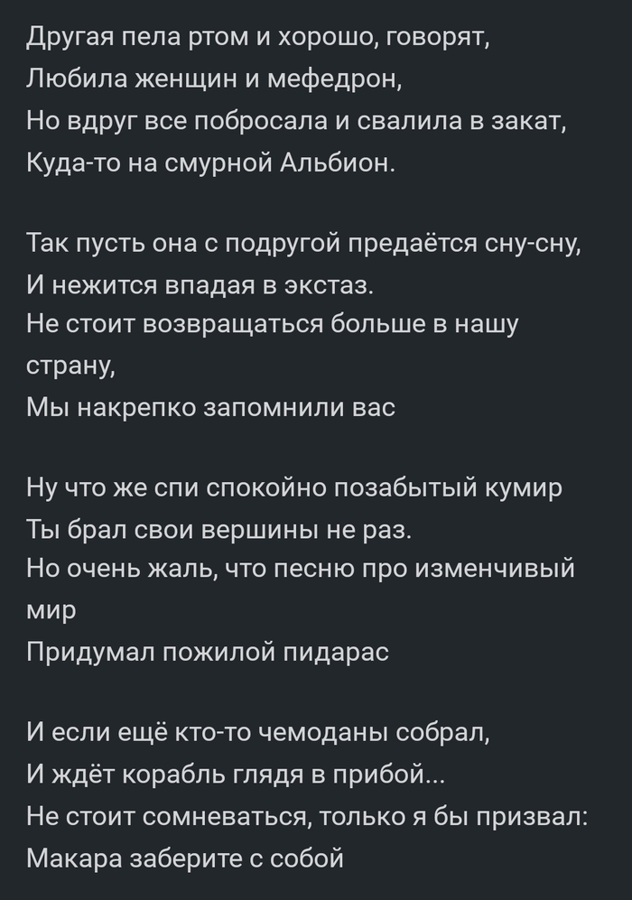 121 KnopkaPsiha 3 года назад Скриншоты комментов Достойно отдельного поста #comment_233124733 Показать полностью 2 Народное творчество Скриншот Комментарии на Пикабу Восхитительно Длиннопост Мат Стихи Андрей Макаревич 1 1 Ещё 0