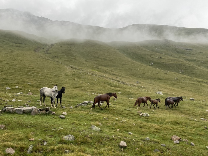 Вышли на перевал Ирик-Чат, где была зона связи, все отзвонились своим близким, успокоили их и насладились шикарными видами вокруг: