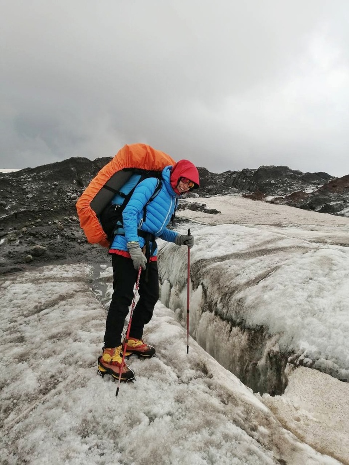 Спустились к леднику, научились ходить в кошках, в тех самых, персидских.