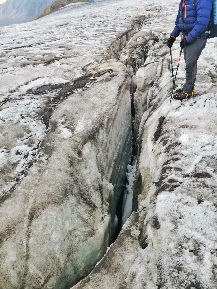 Ждать пришлось не долго, через час или полтора вновь вышли в путь, на этот раз спокойно, рассматривали трещинки, фоткались с ними и продолжили спуск.