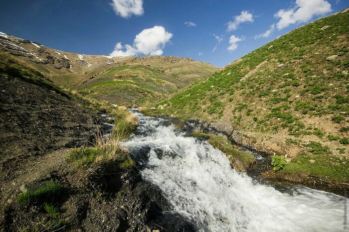 Периодически попадались и зелёные полянки с растительностью, маленькие водопадики и горные ручьи.