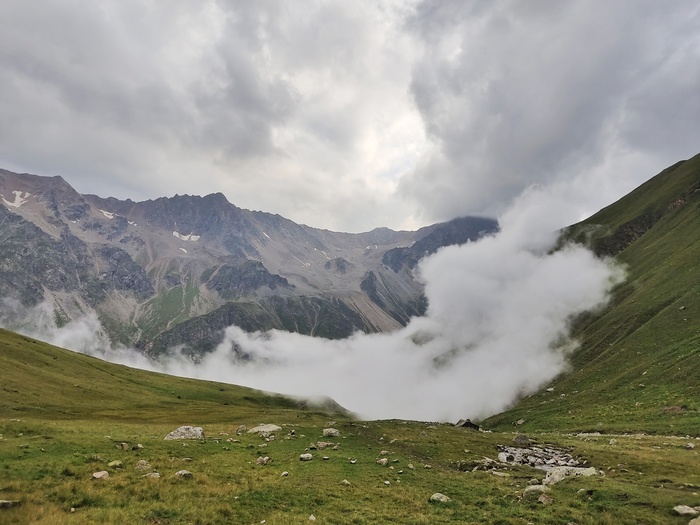 Спойлер: погода опять поменялась и как мы поняли уже внизу, у нас была возможность подняться в тот день. Вот что значит погода в горах.