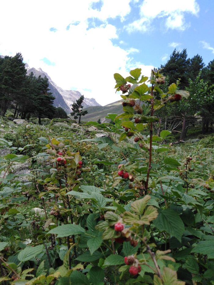 Спускаясь заправились витаминами, был длинный привал у малинников, и дальше вышли к посёлку Эльбрус где по пути уже была забронирована гостиница на нашу группу.