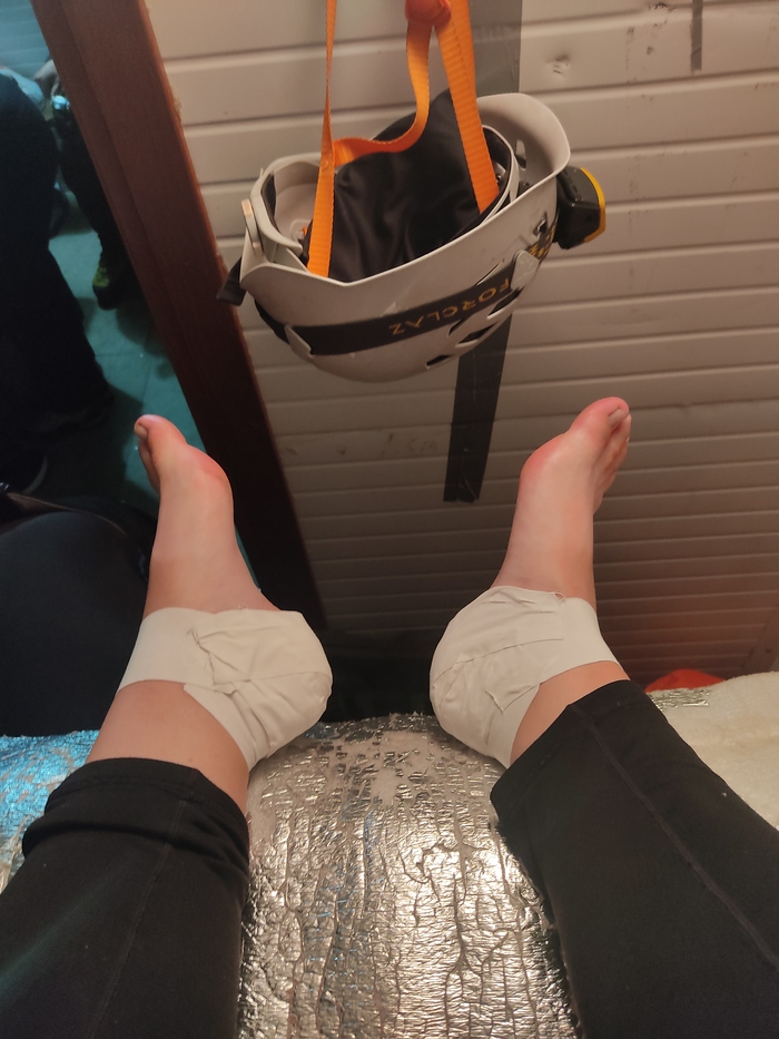 После того, как я стёрла в первые 15 минут пятки, с каждым днём они у меня всё больше убивались, рана становилась все глубже, поэтому мне потребовалось 2 рулона пластыря для укомплектования своих пяток так, что б на восхождении они не подвели меня.