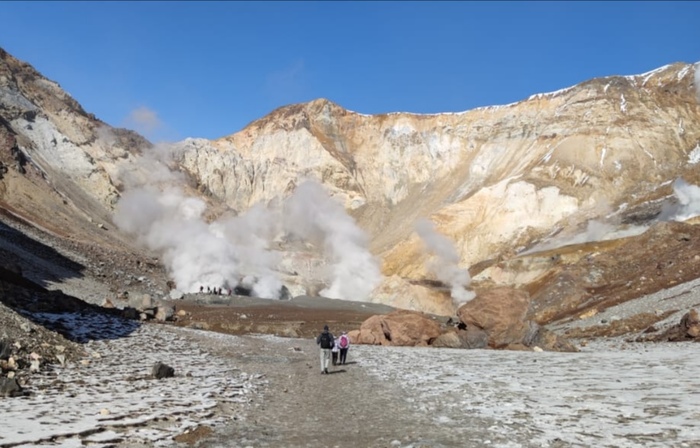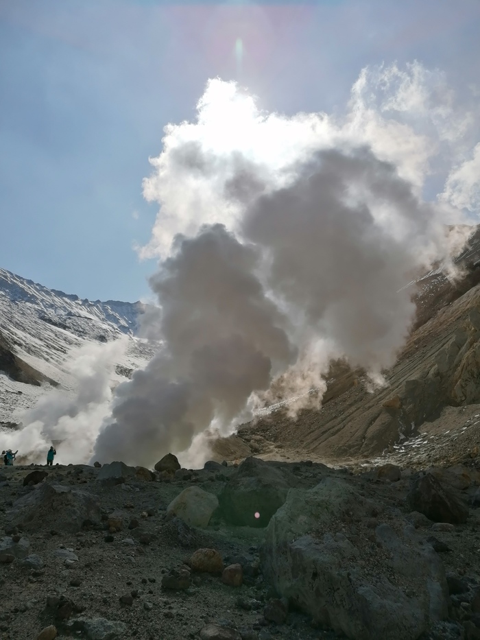 Долго ли коротко ли, но добрались мы до подножия Мутновского вулкана. Какое счастье было выйти на улицу..