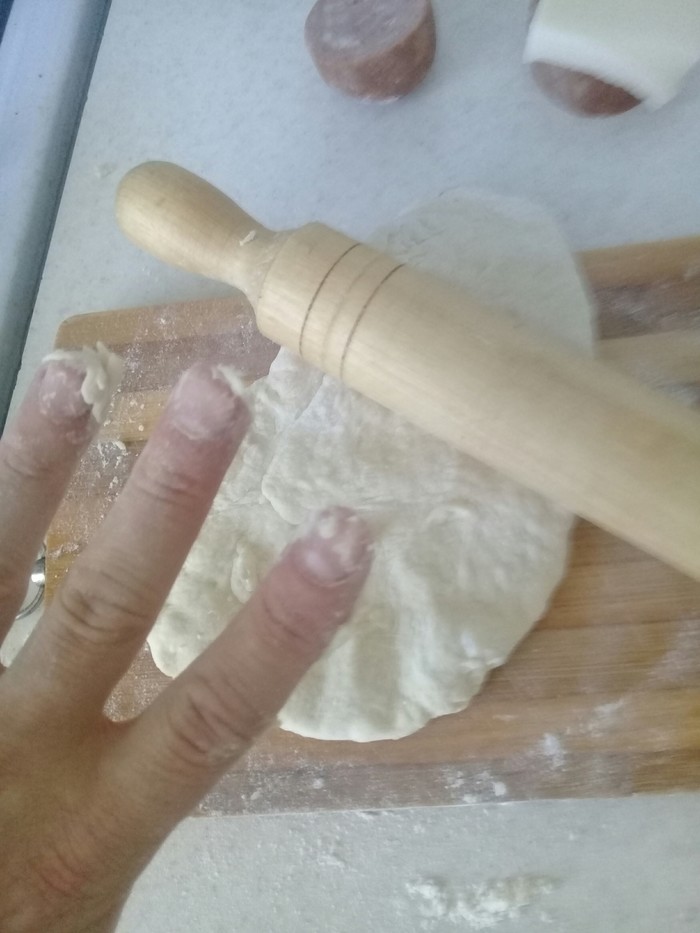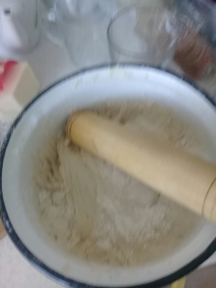 Тесто, думал нифига не получится, рецепт дрожи, вода, мука, сахар(это важно, чайная ложка) соль.