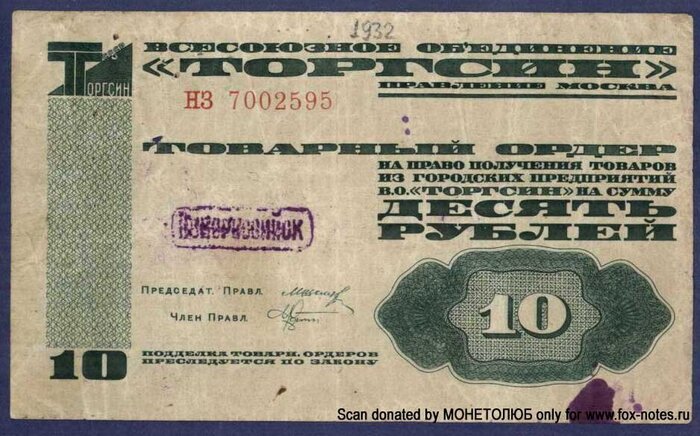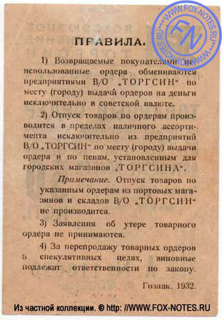 Чеки Торгсина настолько редки, что для приведения их изображений придется отказаться от традиции этого канала, показывать актуальные аукционные проходы, а обратиться к отличному ресурсы про коллекционирование банкнот http://fox-notes.ru/. Fox notes - это самый подробный русскоязычный ресурс о банкнотах России и мира