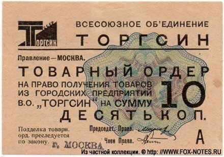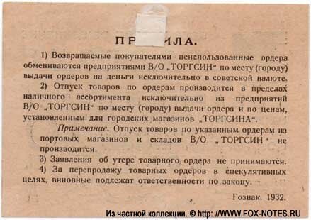 Торгсин - своеобразный вариант раскулачивания городского населения. На первый взгляд, цены в Торгсине были значительно ниже чем на продовольственных рынках. Однако приобрести чеки за обычные рубли можно было на сером рынке за сумму в десятки раз превышающих номинал. За рубль Торгсина в зависимости от периода и от места нужно было заплатить от 30 обычных советских рублей. В отдельные временные периоды обменный курс мог достигать 1 : 60