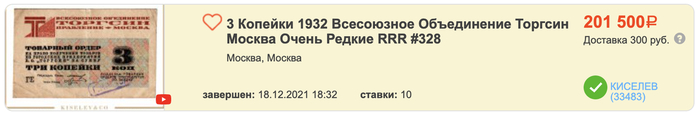 До этого рекорд был установлен еще на старом добром Молотке - за чек 10 рублей заплатили 1 000 100 рублей ! И это в 2011 году! При этом на сколько мне известно - многие коллекционеры ругали продавца за то, что так быстро продал этот уникальный предмет и не сделал ему достойной рекламы. Спустя 11 лет актуальная цена такого предмета в 2-4 раза выше.