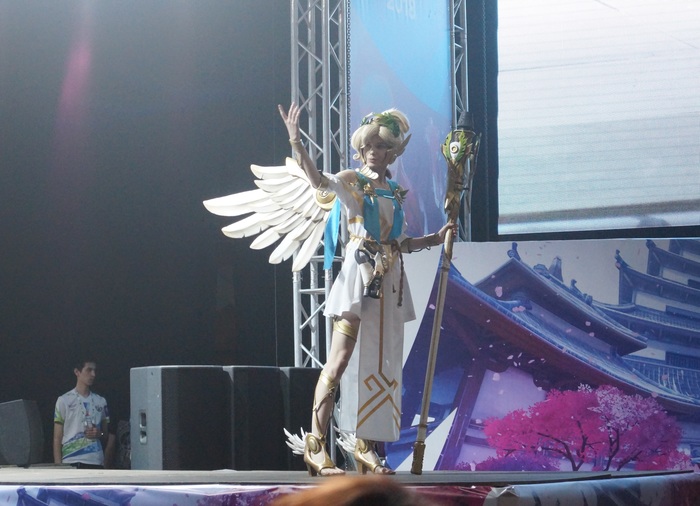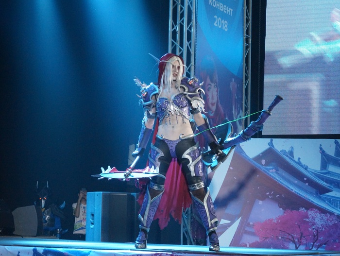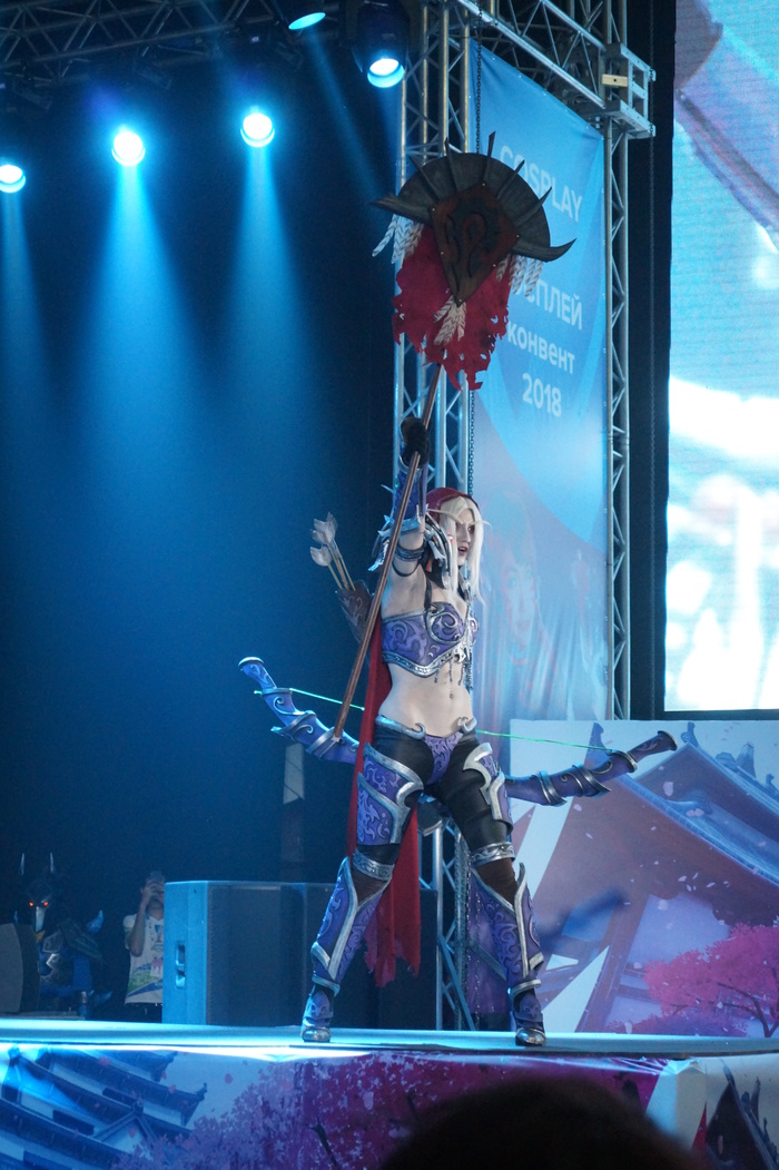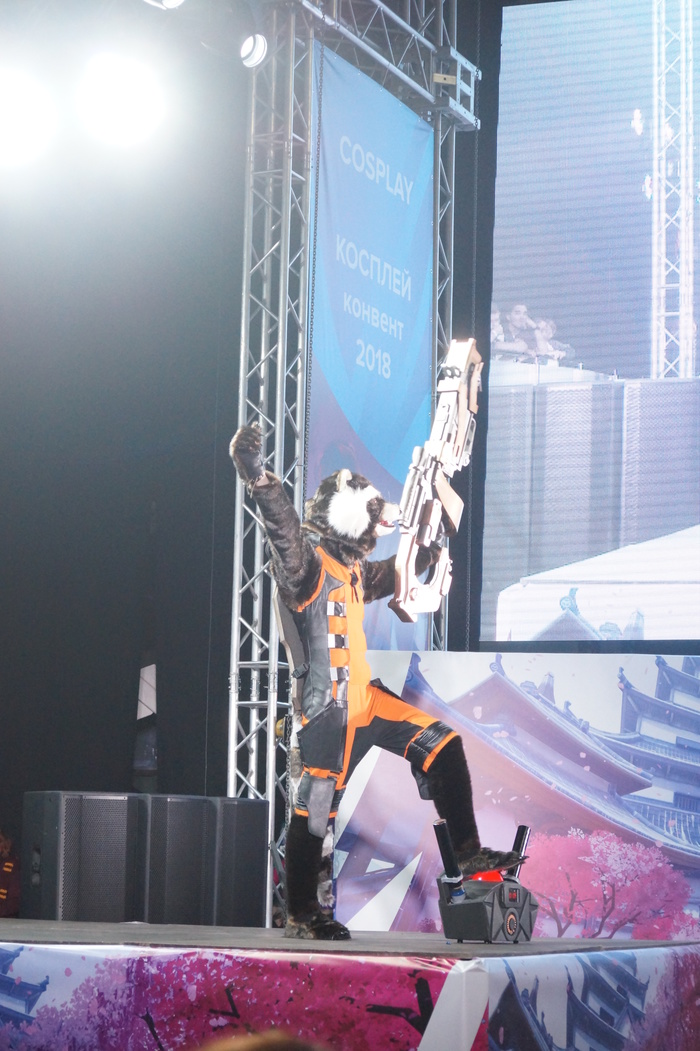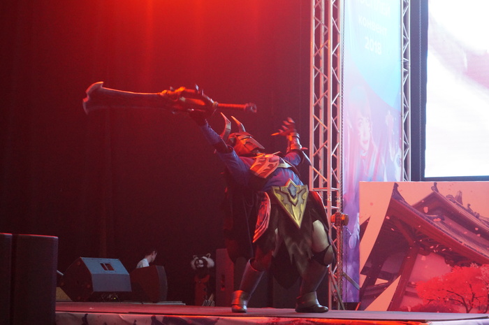 Дефиле косплееров. Каждый выходил под своё музыкальное сопровождение и пытался отыграть, представить героя. Как зритель могу сказать, что это представление играет важную роль в восприятии костюма в целом.