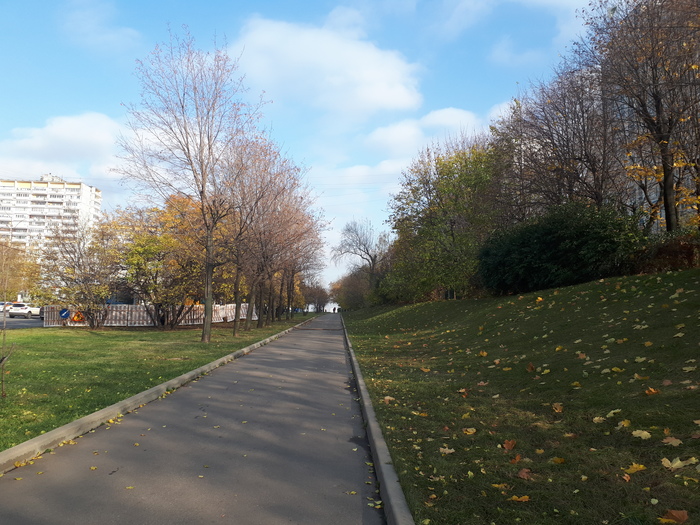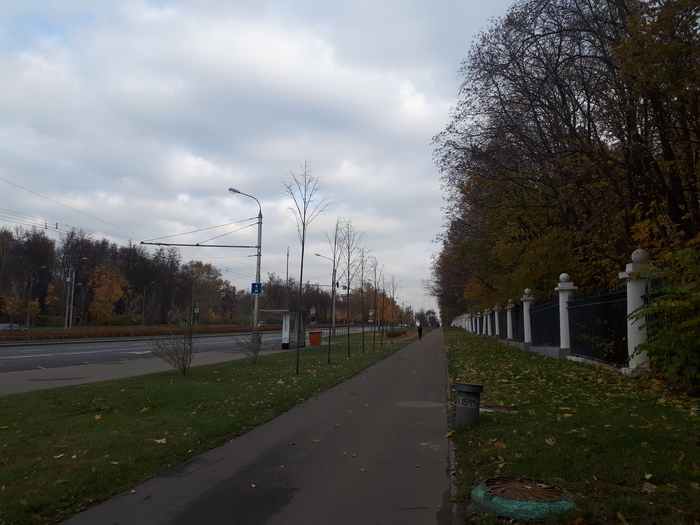 Я своё желание сходить вот в такой поход по доброте душевной высказал ранее родне и от каждого, с кем общался, получил примерно один и тот же ответ: "Зачем тебе это? Сходил бы лучше в лес, а не дышал бы выхлопами". Пока топал, размышлял, и нашёл ответ: лес - это скучно, а в городе можно найти совершенно разные панорамы, интересные случайные события и сочетание природы с технологиями. Осенние яркие краски листвы и серые городские пейзажи - очень контрастно и по сути, и по оттенкам.