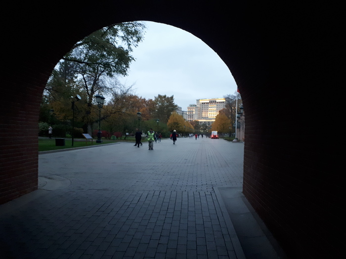 Не буду подробно рассказывать, как я прошёл по Александровскому саду, прошёл мимо городов-героев и почтил память воинов у вечного огня - это должно было быть сделано и это было сделано. К тому же, я уже серьёзно устал идти, и мыслей, рождавшихся в голове, практически не оставалось. Основная мысль, которая витала в голове, начиная с Болотной площади - это близость основной цели, другие мысли ушли на второй план. Вечерние сумерки никак не прибавляли желания отвлекаться от остатка пути.