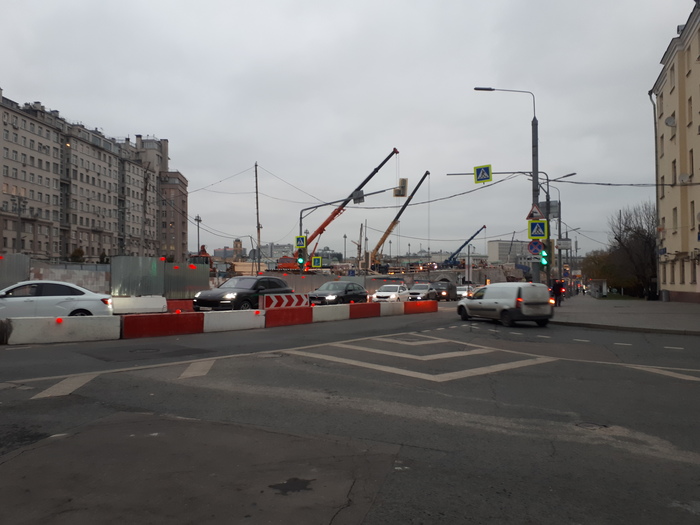 Мне осталось пройти только два моста - и я, считай, на месте. С мостом, ведущим через канал на знаменитую Болотную площадь, проблем не было. А вот с мостом через основную часть Москва-реки... ну, смотрите на картинке. Ремонт всей пешеходной зоны по этой стороне моста было непредвиденным затруднением. Первым впечатлением был ступор. Но потом пришло понимание, что: а. мостов несколько и можно, сделав приличный крюк, попасть к кремлю через соседний; б. вряд ли поступили так глупо, что мостом воспользоваться нельзя вовсе.
